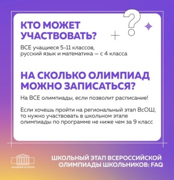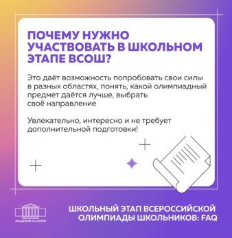 Уважаемые учащиеся и родители (законные представители)! Стартует школьный этап Всероссийской олимпиады школьников: