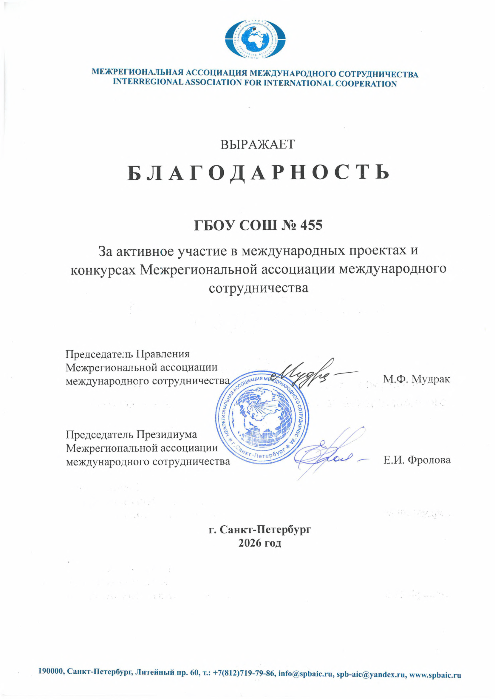 В десятый юбилей год Клуб "Туманный Альбион" открыл новую секцию "Путешествуя – познаю мир", включающую три направления: азиатское (Китай), образовательное и познавательное. Все три направления успешно начали работу в 2018-2019 учебном году. На весенних каникулах 2019 года группа школьников 7-х-10-х классов блестяще прошли курс обучения в Лондоне, получив сертификаты, подтверждающие европейский уровень владения английским языком, соответствующий их возрасту и программе обучения в английской школе. В июле 2019 года подписано трехстороннее соглашение сотрудничества между Ассоциацией международного сотрудничества Санкт-Петербурга, нашей школой и 66-й школой города Циндао (Китай). В рамках данного соглашения в июле 2019 делегация учеников нашей школы посетила международный лагерь в Циндао, где наши ребята с честью представили Россию, Санкт-Петербург и нашу замечательную школу 455. В июле-августе 2019 группа школьников и взрослых открыла третье познавательное направление, посетив Лондон. У них была возможность познакомиться со всеми знаковыми достопримечательностями Лондона, но главное – они активно применяли на практике владение английским языком.